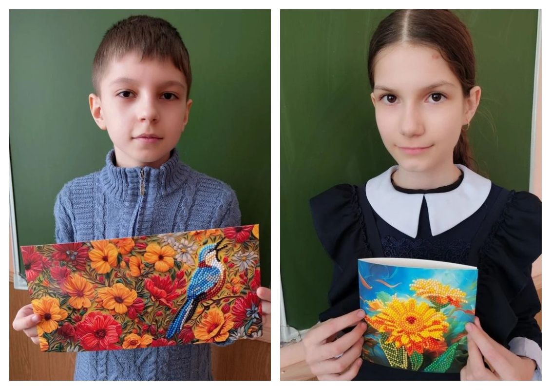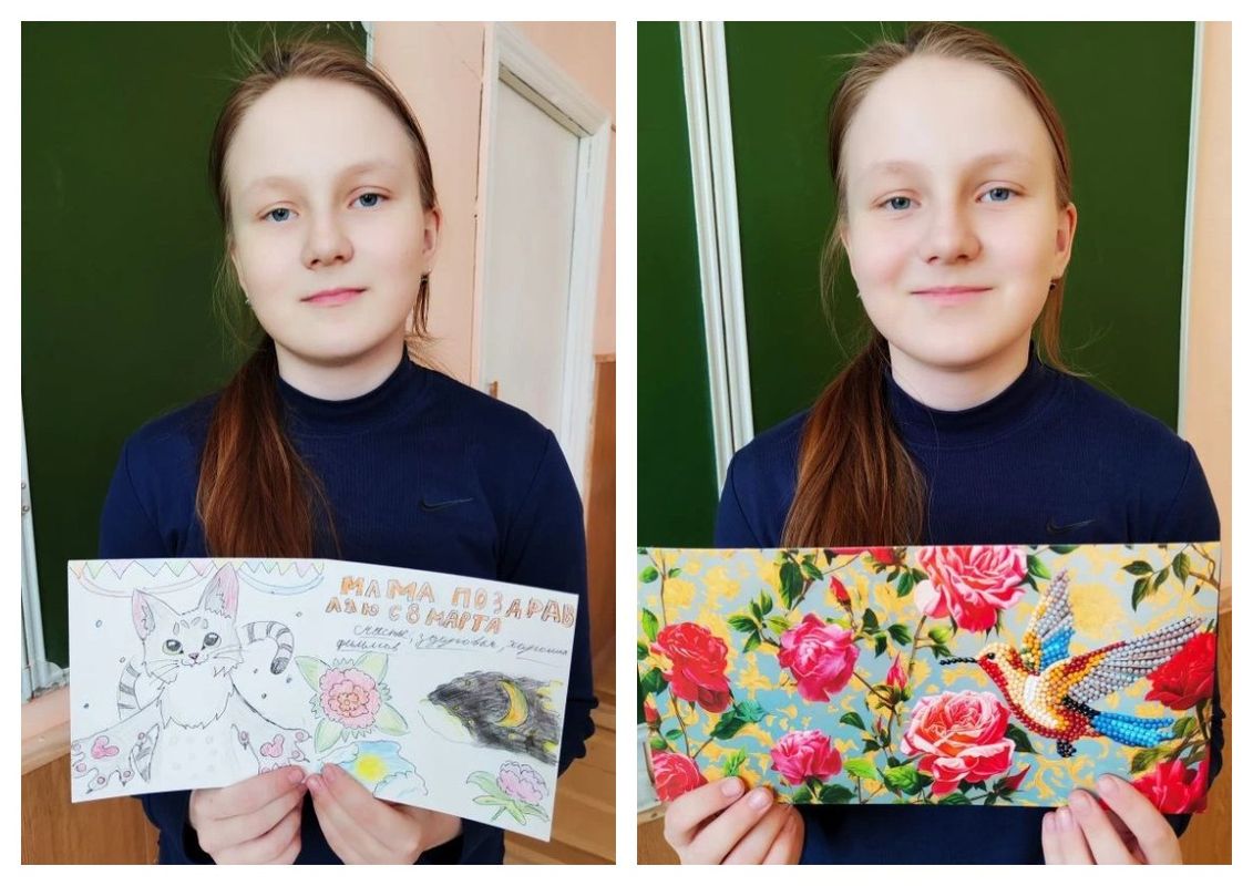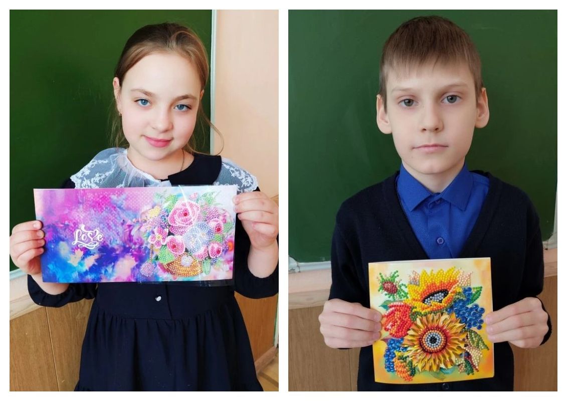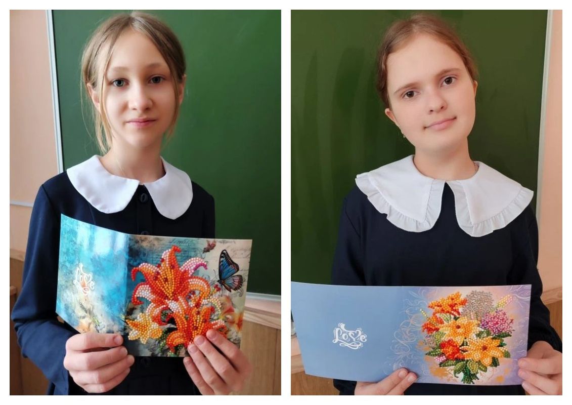 К 8 Марта обучающиеся объединения «Увлекательный английский» создали для самых любимых мам настоящие шедевры — открытки из алмазной мозаики.